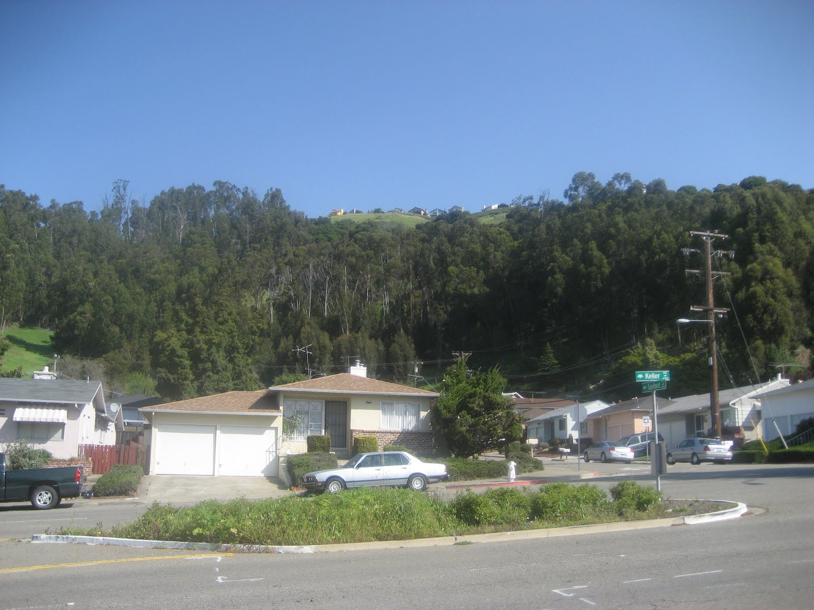 The intersection brought back memories because I spent quite a bit of time in this area when growing up. At age 12 or 13 I attended a slumber party for the other K. I've known her since I was four although we drifted apart a few years ago. K, her other friends and I went for a hike down this trail -- and stumbled upon a police crime scene. Just a stolen car that someone had attempted to burn. But they let us watch as they collected evidence. And we managed to talk one of the police officers to give us a ride back to the house. We all sat in the car trying to look somber as the officer went to K's front door and asked her mom if we belonged to her. Oh the laughter.